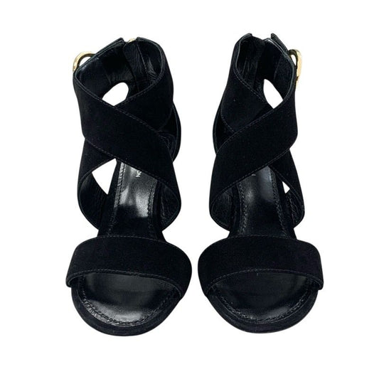 Hermes Crystal 105 Sandals Shoes Suede Black Silver Strap