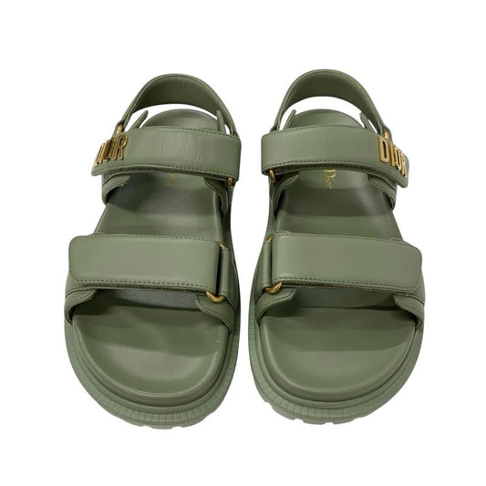 Christian Dioract Sandals Shoes Leather Green Unused Logo Flat