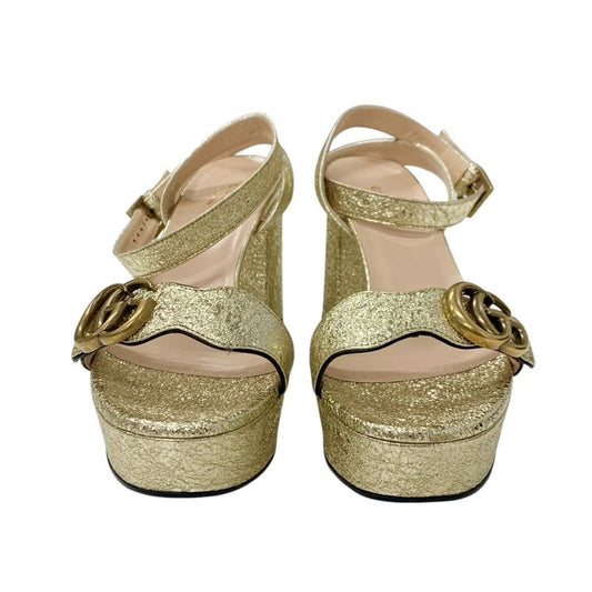 Gucci Double G Sandals Shoes Leather Gold Ggmarmont Platform Strap