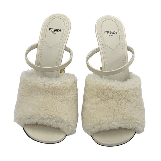 Unused Fendi First Sandals Mule Party Shoes Metal Heel Sheepskin Beige