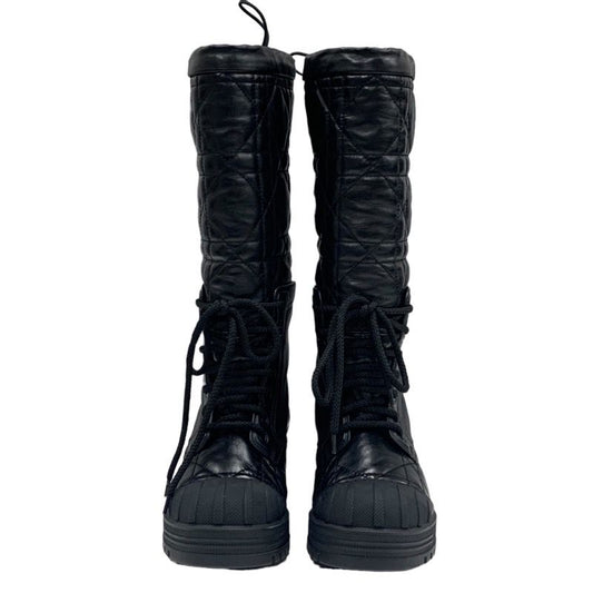 Christian Dioriron Boots Long Boots Middle Boots Quilted Lace-up Leather Black