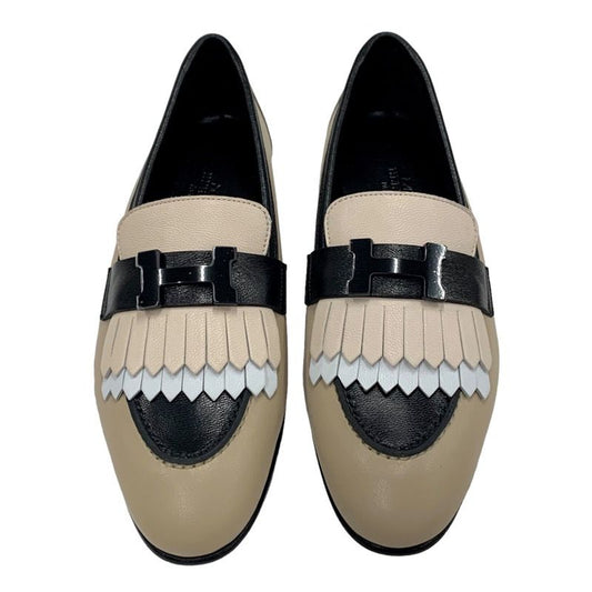Hermes Royale Loafers Leather Shoes Leather White Beige Silver Unused Moccasins