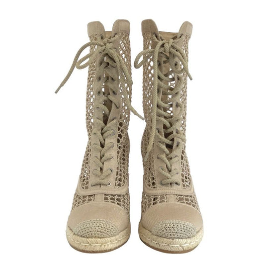 Christian DIOR Nayghtily-d Boots Short Boots Shoes Fabric Beige Lace-up Braided