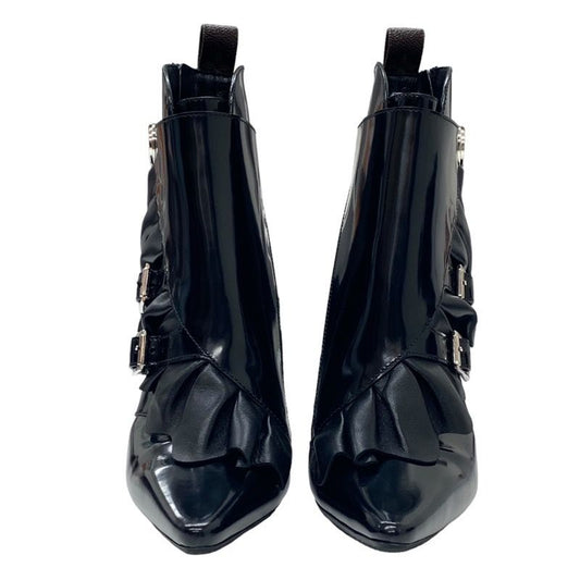 Louis Vuitton Boots Short Boots Shoes Leather Fabric Black Silver Belt Ruffle