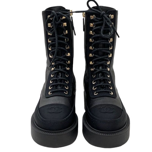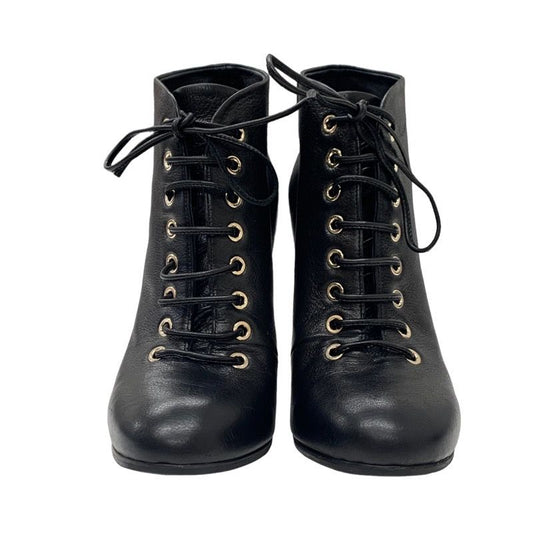 Chanel Boots Short Boots Here Mark Calfskin Lace Up Black
