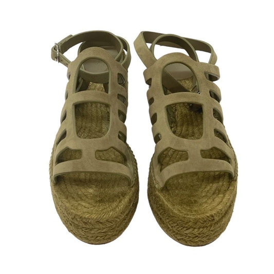 Hermes Catalia Sandals Shoes Suede Khaki Silver Unused Espadrilles Wedge Sole