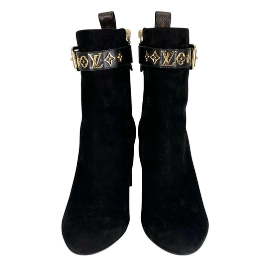 ▲louis Vuitton 2021 1a965s Silhouette Line Suede Leather Ankle Boots Black Gold