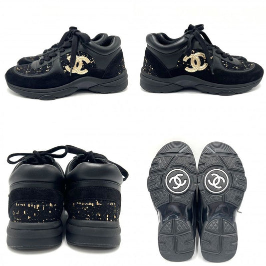 Chanel Sneakers Women's Low Cut Sneakers Coco Mark Tweed Size 35 Fashion Item
