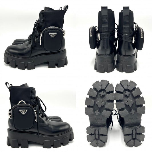 Prada Boots Women's Triangle Logo Monolith With Pouch Short Boots Shoes Size 38