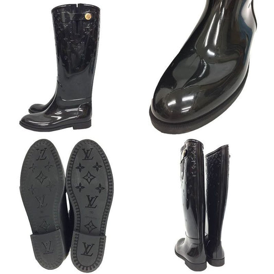 Louis Vuitton Drop Line Rain Boots Size 38 Black Monogram Women's Shoes Aq11532