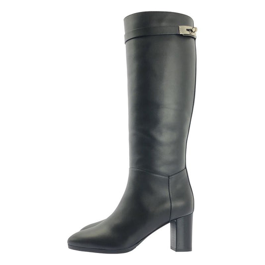 Hermes Story Kelly Hardware Leather Long Boots - 37 - Black - Women's