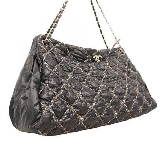 Chanel Shoulder Bag Paris Visance Nylon Black Silver Hardware Women