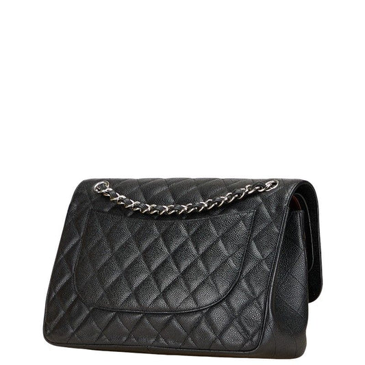 Chanel Coco Mark Matelasse 30 Double Flap Chain Shoulder Bag Black Caviar Skin