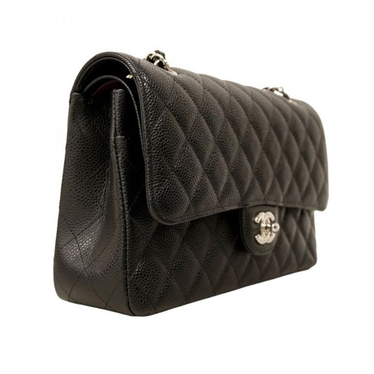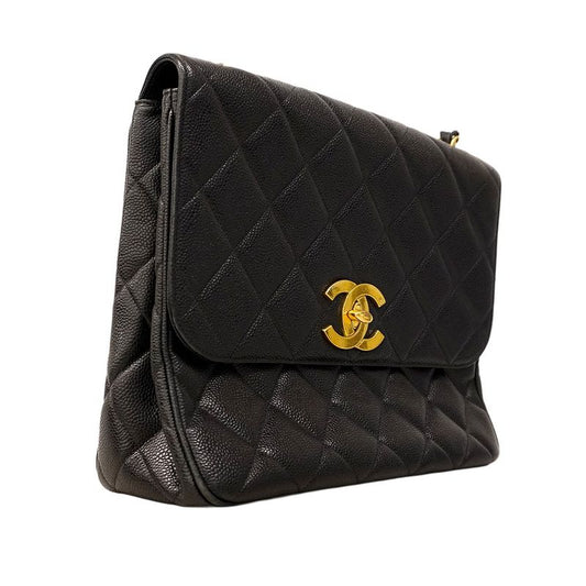 Chanel Shoulder Bag Matelasse Caviar Skin Black Silver Hardware Women