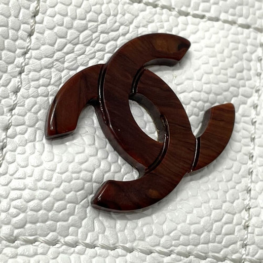 Chanel CC Vintage Caviar Leather Tote White Shoulder Bag Wooden Ring Handle