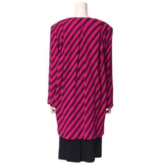 Christian DIOR Vintage Skirt Suit Size 13 Striped Collarless Jacket Tight