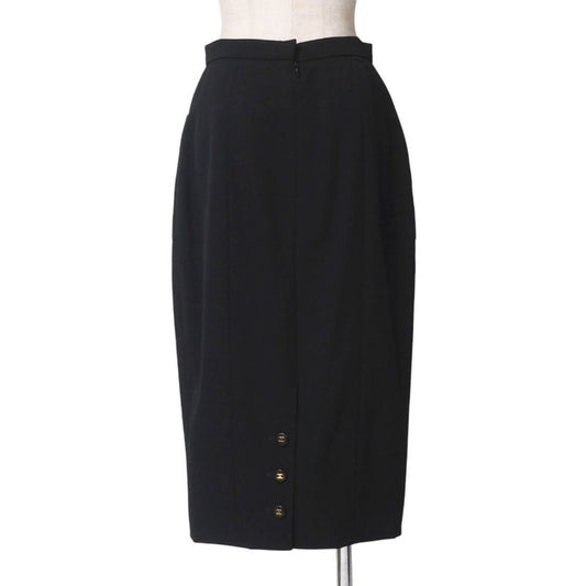 Chanel Skirt Size 38 95A Tight Skirt CC Logo Coco Mark Button Wool Black Made
