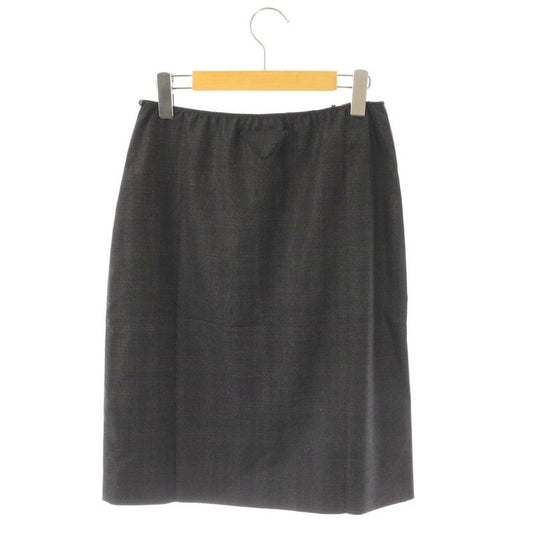 Prada 24 Wool Skirt Tight Knee Length Check 38S Dark Grey Off White Navy P179y
