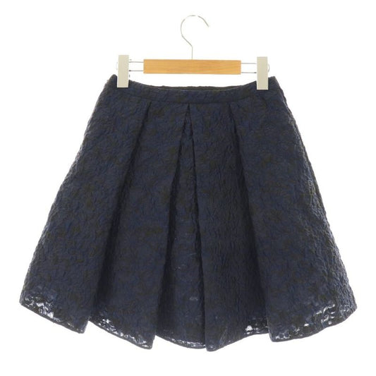 Christian DIOR Jacquard Tuck Volume Skirt Knee Length Flared 36 Navy Blue Black