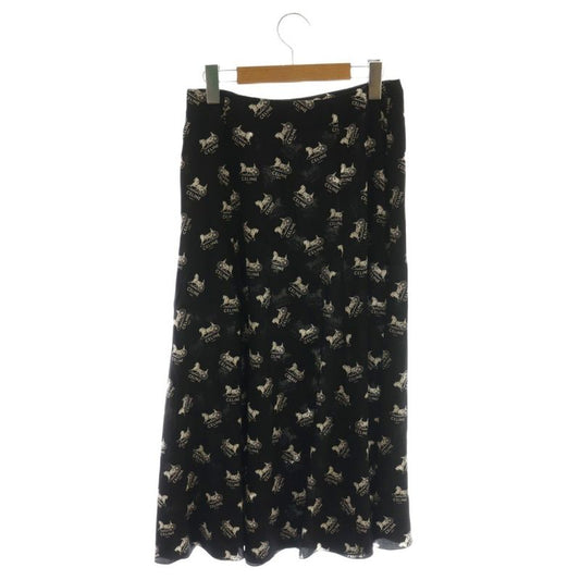 Celine Sulky Logo Allover Skirt Flared Silk 36 Black White CX - GY57