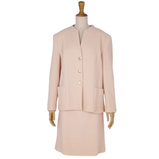 Vintage Chanel Setup 98P Skirt Suit Wool Tweed Coco Mark Button Jacket Skirt