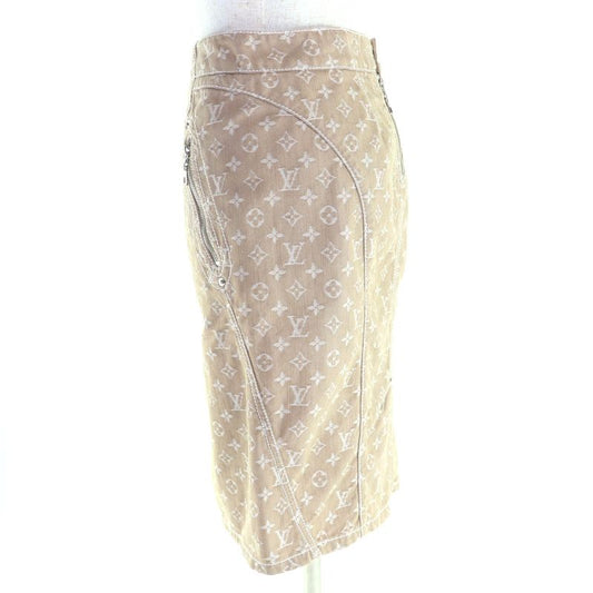 Louis Vuitton Rw071w Wksk02cf7 Cotton Monogram Denim Skirt With Logo Leather