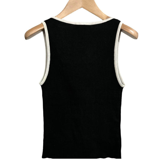 CHANEL CC 95P Vintage Tank Top Vest Black White Button Up 38