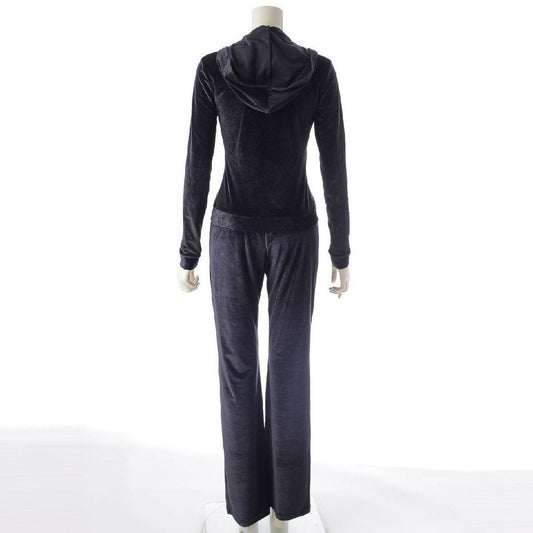 CHANEL 05C Velour Track Suit Pants Set Top Y2K Black 38