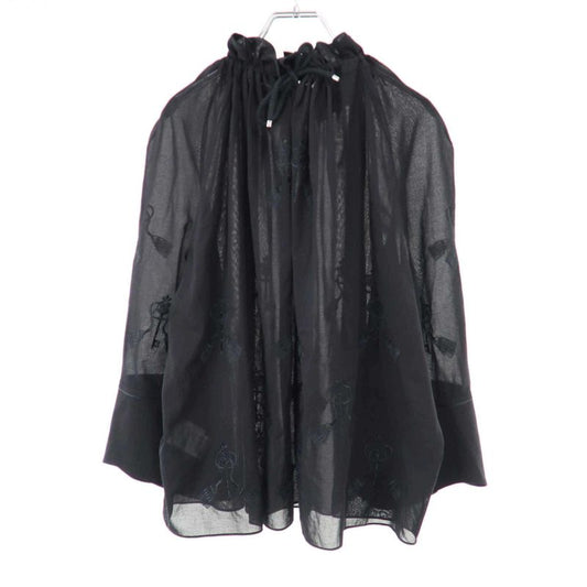 Hermes 18ss Gathered Neck Key Embroidery Balloon Blouse 86-7606 Black 42