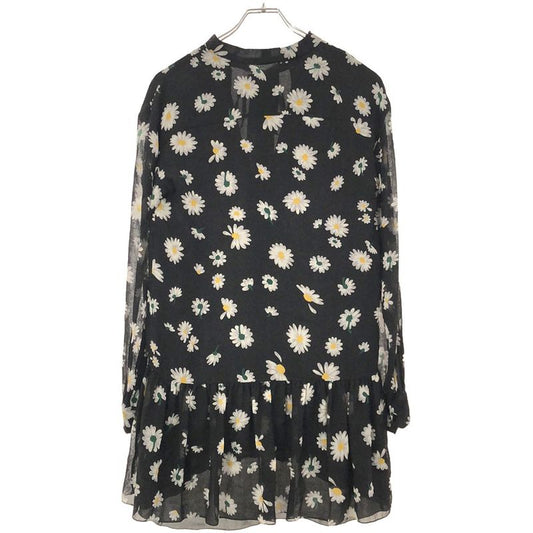 Saint Laurent Paris 18aw Skipper Ribbon Flower Shirt Dress 485610 Black 34
