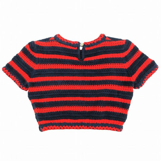 Chanel P70323k10021 21c Cropped Striped Knit Pullover Top Short Sleeves Red