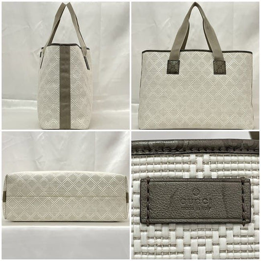 Gucci Tote Bag White Beige Khaki Shimmer Line 289626
