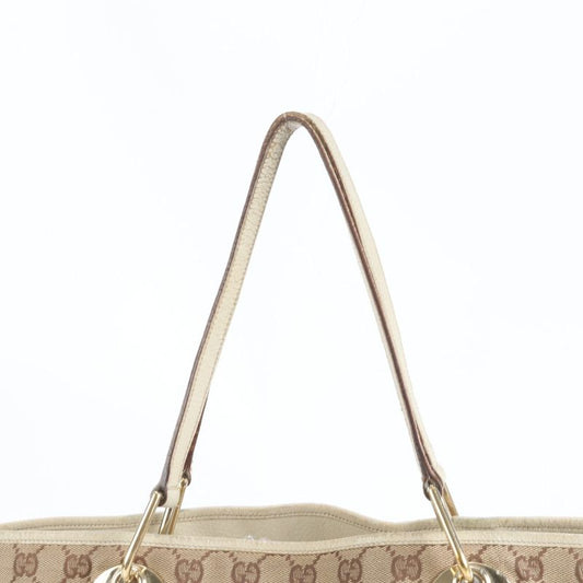 Gucci GG Canvas Leather Tote Bag Shoulder Hand 113015 Silver Hardware Genuine