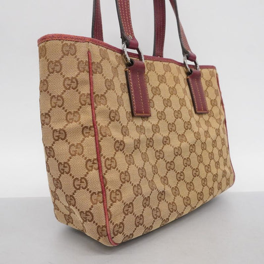 Gucci Tote Bag GG Canvas 113019 Canvas Brown Red Silver Hardware Women's