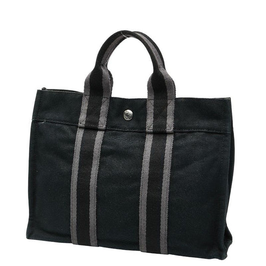 Hermes Fourre Tout Tote PM Tote Handbag Black Gray Canvas Women Hermes