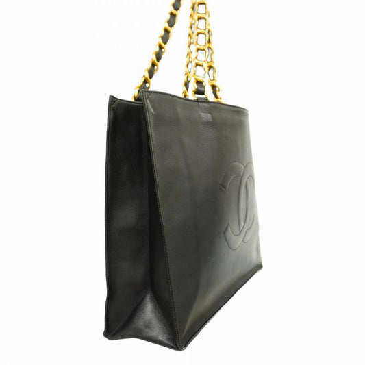Chanel Tote Bag Chain Lambskin Black Gold Hardware Women
