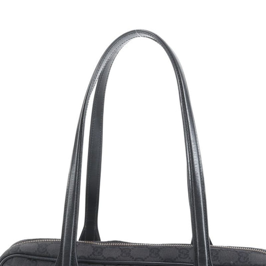 Gucci GG Canvas 90674 Leather Tote Bag Shoulder Hand Black Gold Hardware