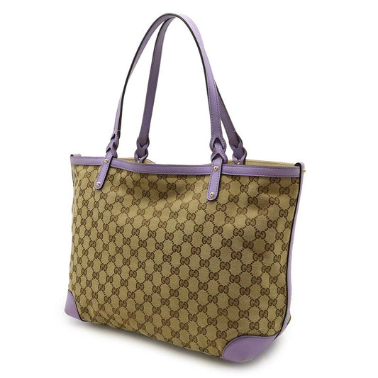 Gucci GG Canvas Tote Bag Shoulder Bag Semi Shoulder Leather Khaki Beige Purple