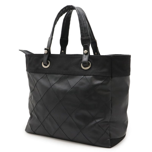 Chanel Paris Biarritz Tote MM Tote Handbag Coated Canvas Black Silver Hardware