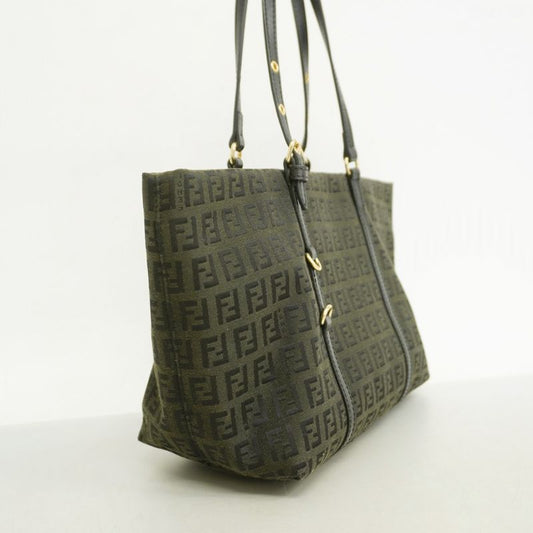 Fendi Tote Bag Zucchino Nylon Canvas Black Chien Pan Gold Hardware Women's