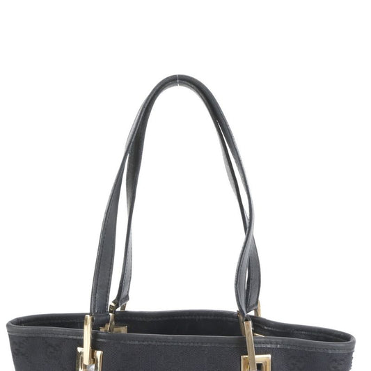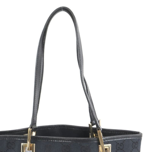 Gucci GG Canvas Leather Tote Bag Shoulder 002 1099 Black Gold Hardware Women's
