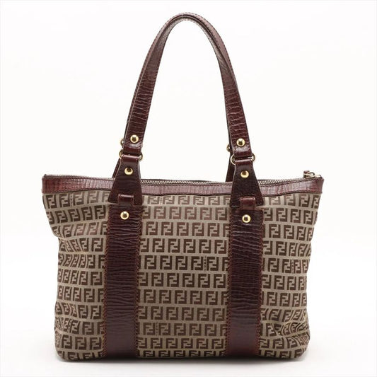 Fendi Zucchino Leather Tote Bag Shoulder Brown Women's EEE Db54-8