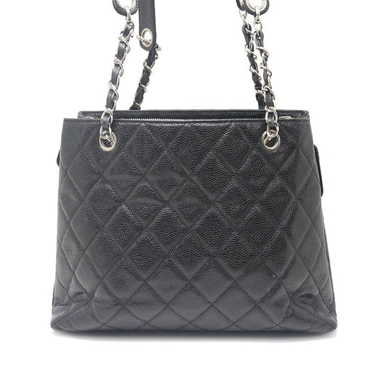 Chanel Chain Tote Bag Caviar Skin Black And Silver Hardware