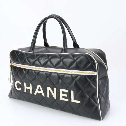 Chanel With Serial Seal Matelasse Logo Leather Boston Bag Business Travel Hand