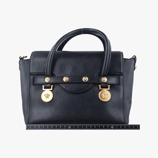 Versace Handbag Virtus Logo V Logo Greca Leather Black