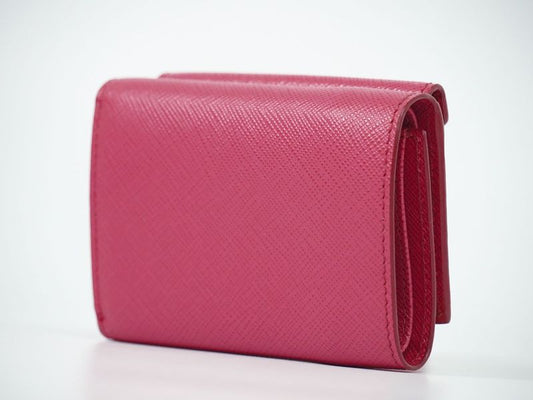 Authentic Prada Saffiano Metal Leather Trifold Fold Wallet Compact Wallet Pink