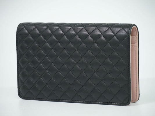 Authentic Chanel Coco Mark Micro Matelasse Long Wallet Long Leather Black Micro