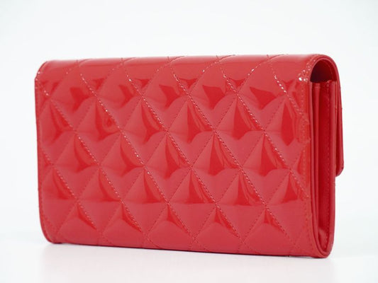 Authentic Chanel Coco Mark Matelasse Long Wallet Patent Leather Red Matelasse