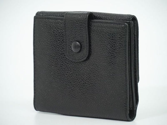Authentic Chanel Coco Mark Fold Wallet Compact Wallet Caviar Skin Leather Black