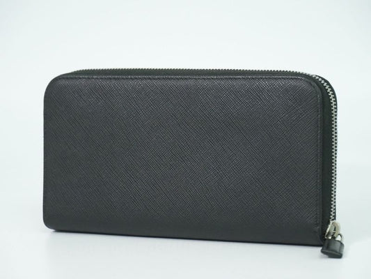 Authentic Prada Saffiano Leather Round Zipper Long Wallet Long Wallet Black